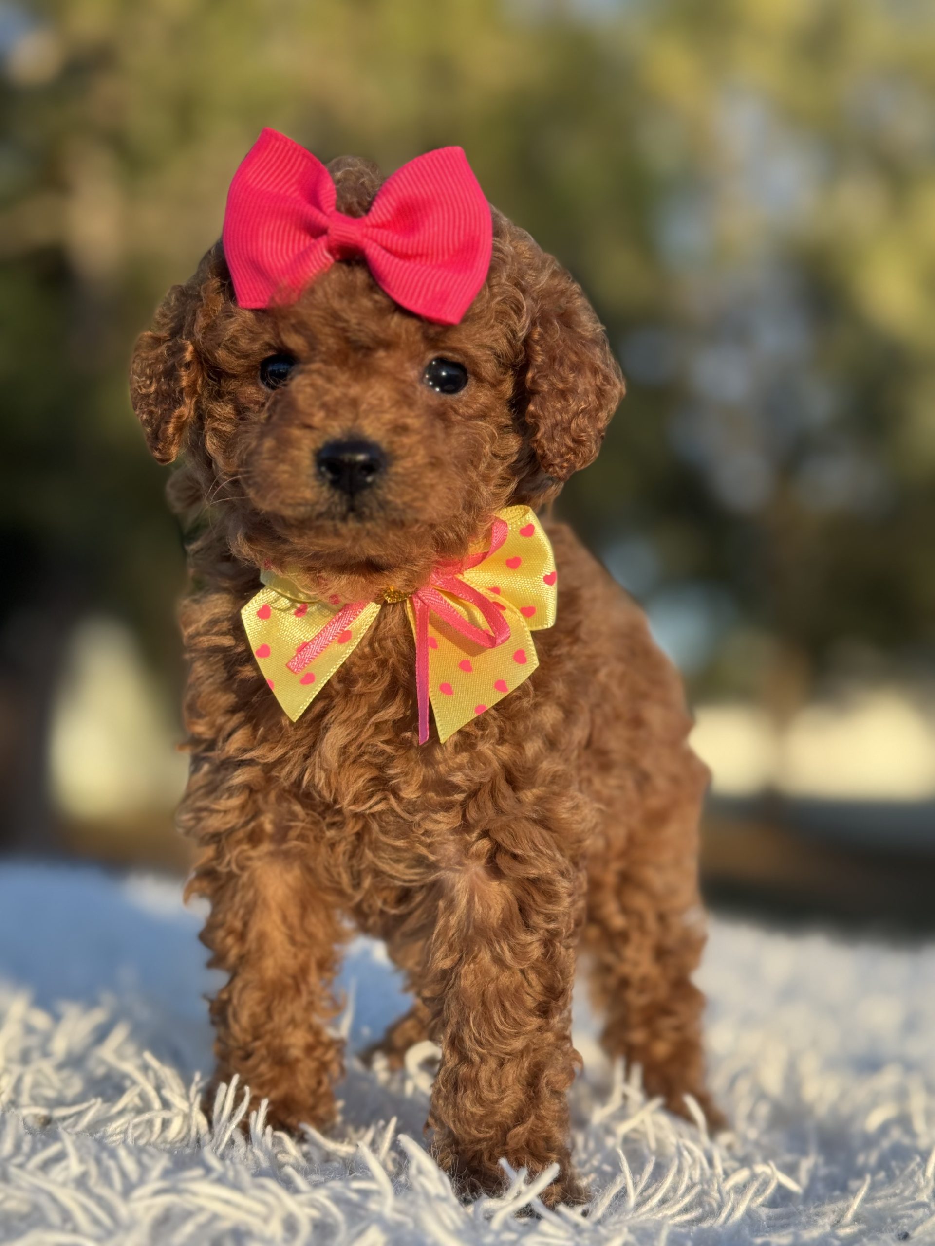 A sweet, easygoing F1b Mini Goldendoodle with a happy personality and a gentle heart. Sprinkles loves human connection, enjoys playful moments, and settles beautifully for cuddles. With his soft, low-shedding coat and affectionate nature, he’s ready to bring joy and warmth into his forever home.