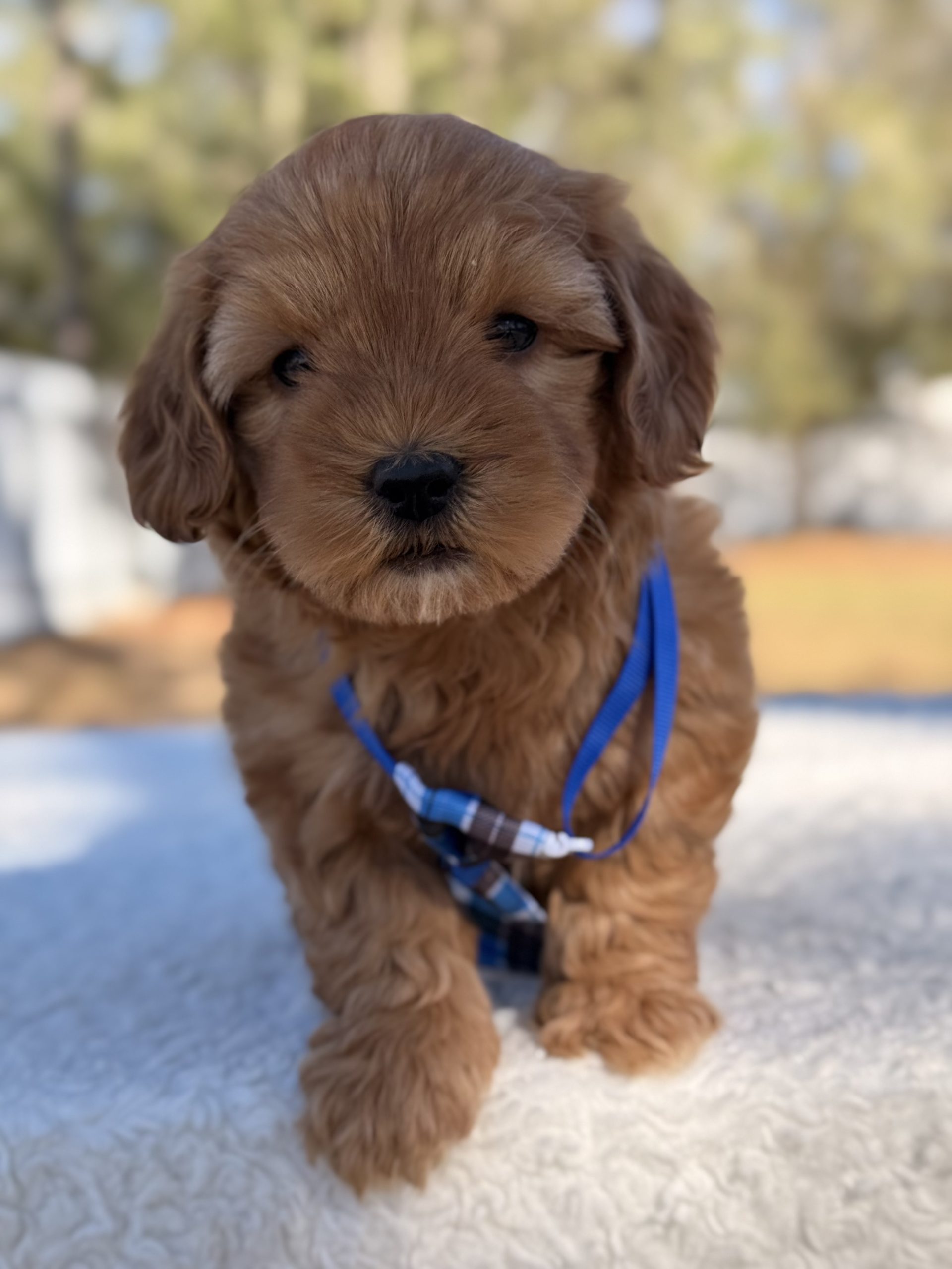 Xiomar is a handsome, affectionate F1 Standard Goldendoodle with a strong build and sweet personality — the perfect mix of Golden Retriever loyalty and Poodle intelligence.