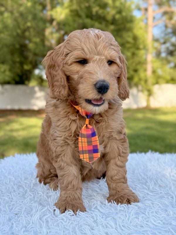 Meet Ace, a handsome F1b Medium Goldendoodle with a bright personality and a natural spark. He’s curious, playful, and carries himself with a confident energy that makes him stand out right away.