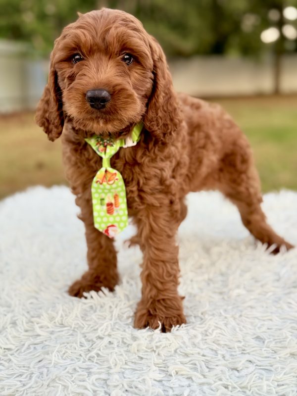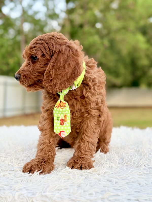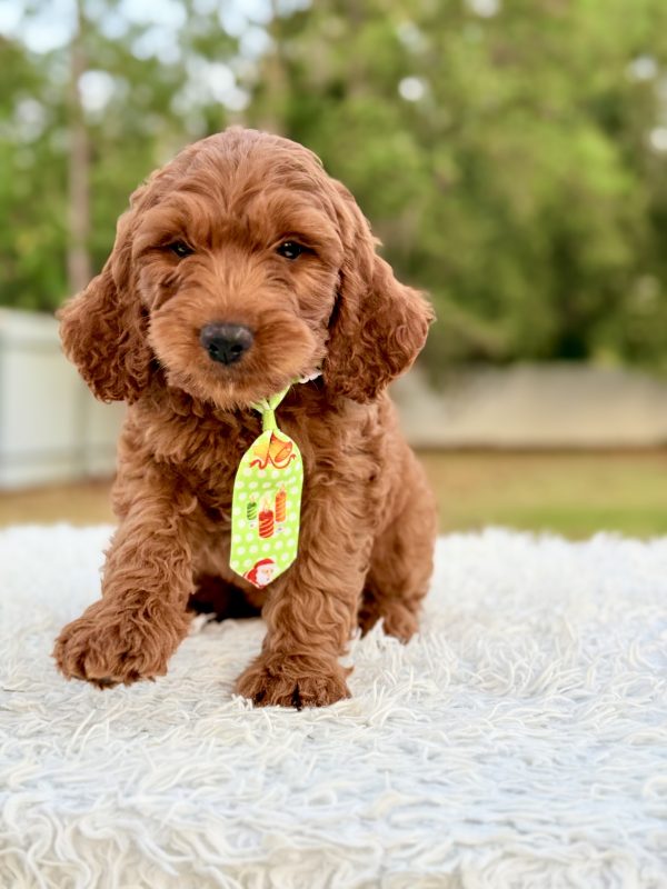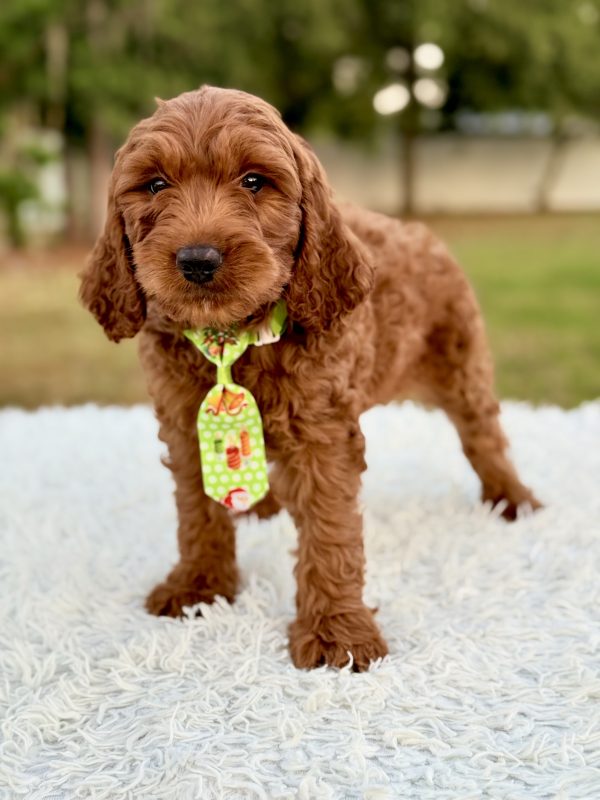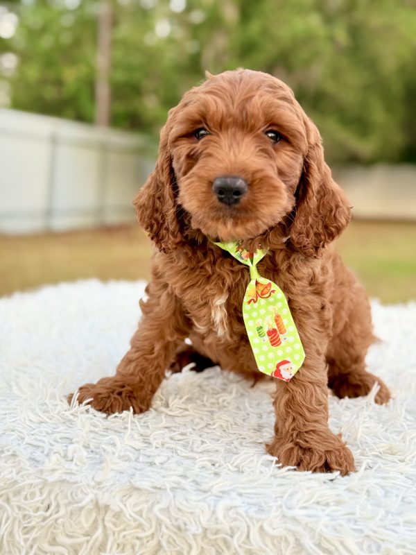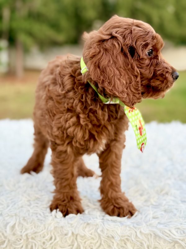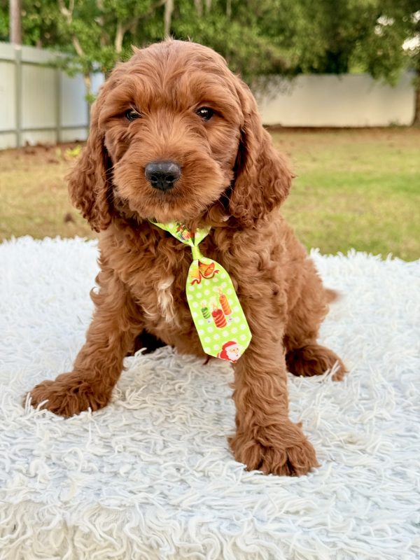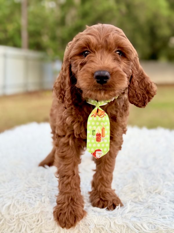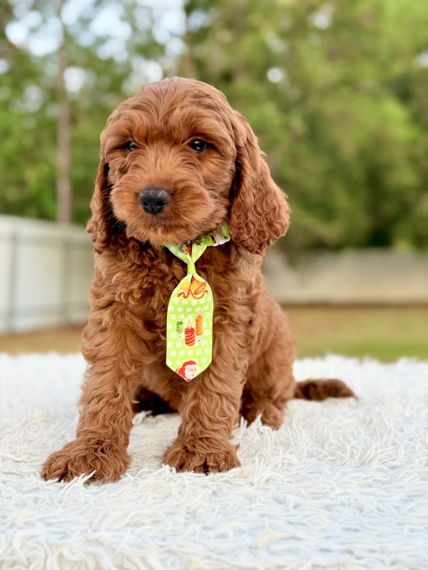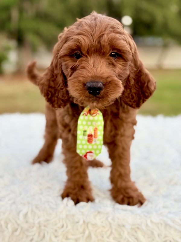 Are you searching for the ideal Goldendoodle puppy? Claus is an adorable Small Goldendoodle with a calm nature, cheerful disposition, and a silky, low-shedding coat. He’s prepared to be the affectionate companion your family has been hoping for.