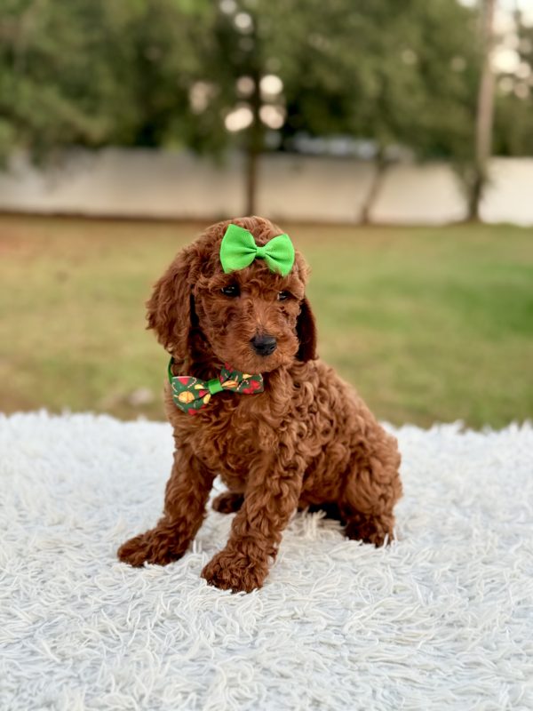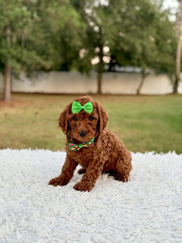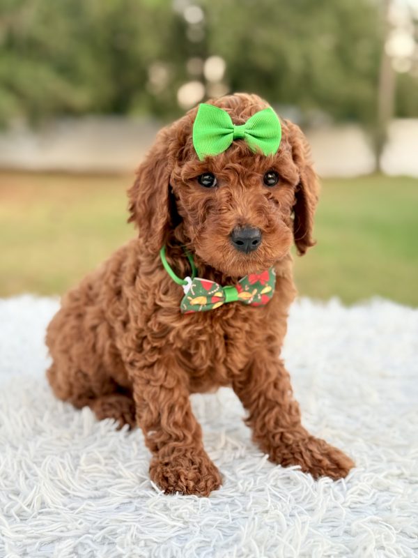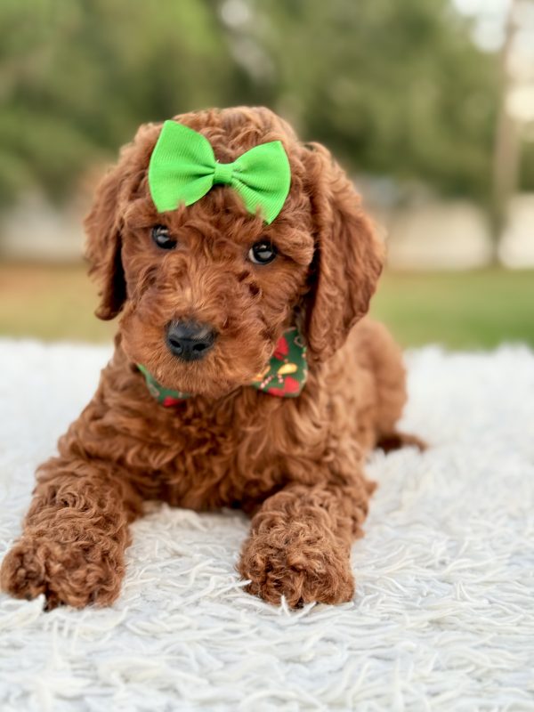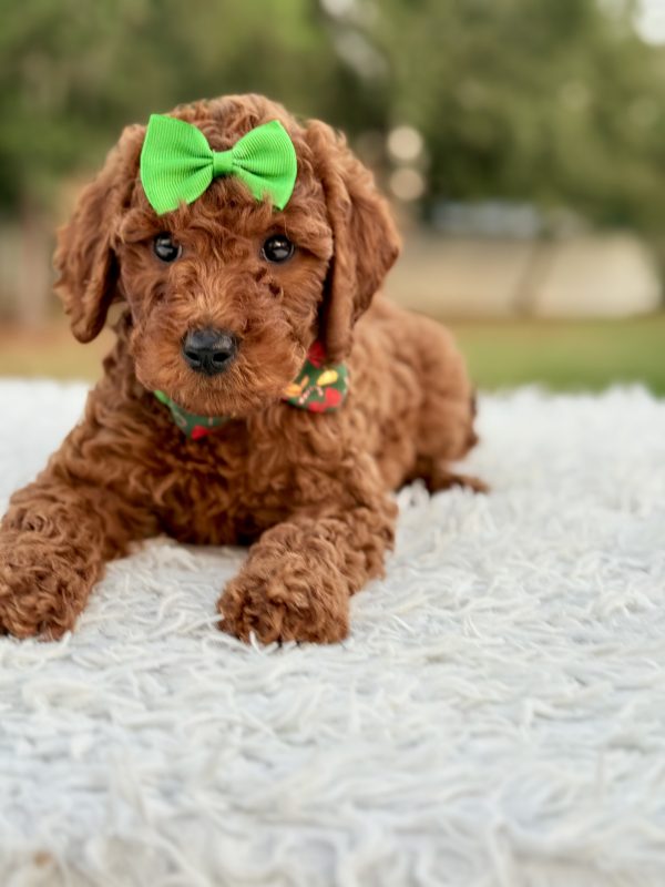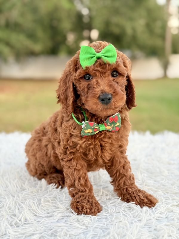 Eve is affectionate, curious, and quick to bond. She’s ideal for families, first-time pet owners, and allergy-sensitive homes. The perfect Mini Goldendoodle puppy for anyone looking for companionship and love.