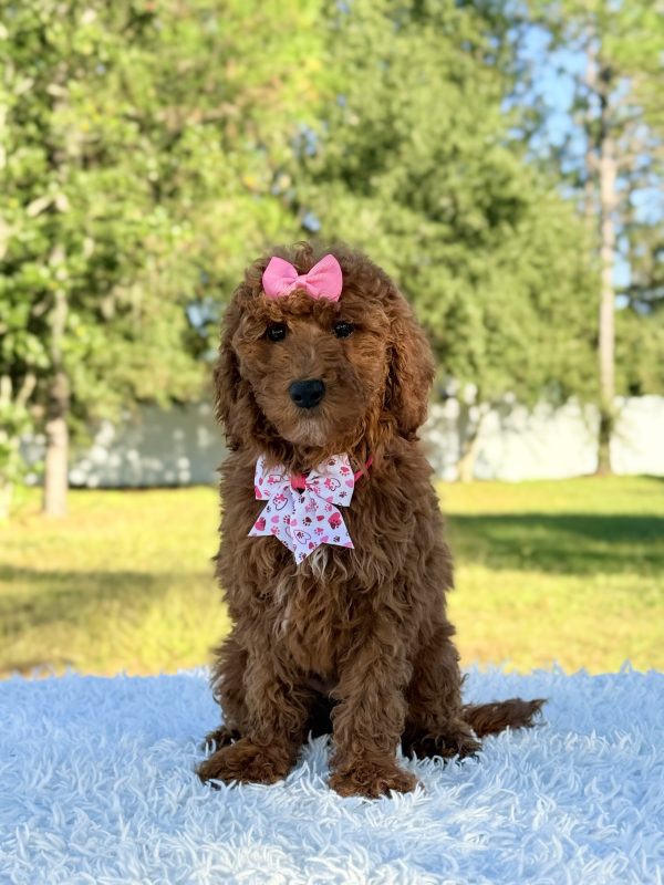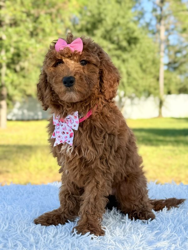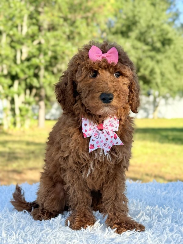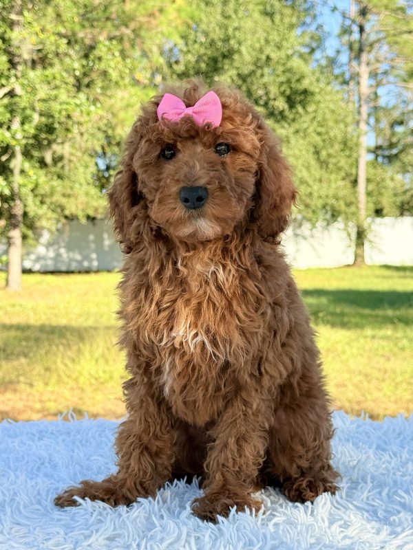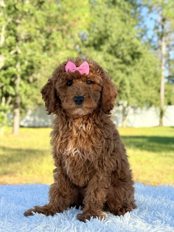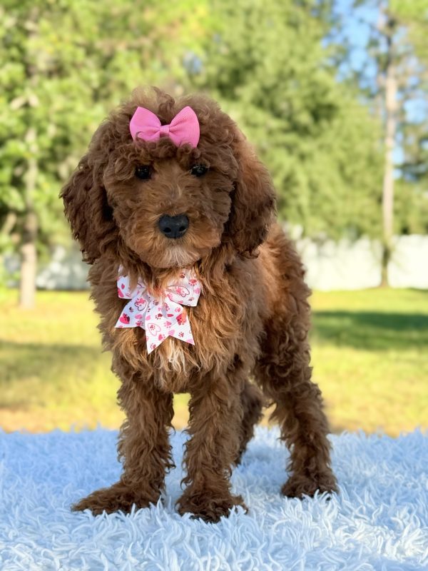 Based on their sizes, we estimate Roxy will weigh 25–35 lbs full grown, the perfect mini size for family adventures and cozy cuddles.