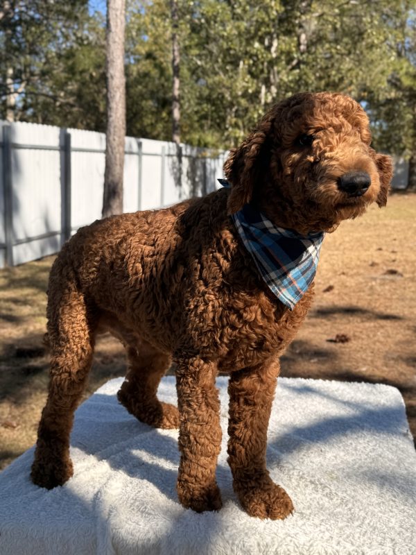 Meet Jacob from our litter of F1bb Standard Goldendoodle. He is an alert and bright little guy who will make an excellent addition to your family. jacob loves to play and romp with his siblings, and he’s always ready to be petted. Don’t miss the opportunity to bring this adorable pup into your home today!