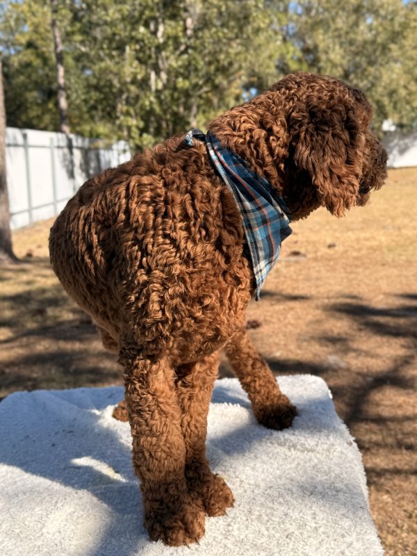 Mom is a 60-pound Goldendoodle, and Dad is a 70-pound Poodle.