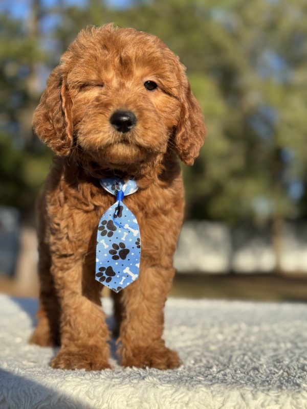 Jax is being raised with early socialization, daily handling, and exposure to household routines and sounds. These foundations help him grow into a confident, well-adjusted puppy and ensure a smooth transition into his forever home.