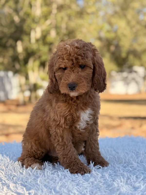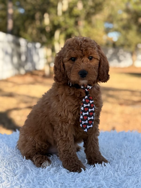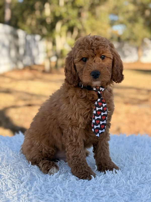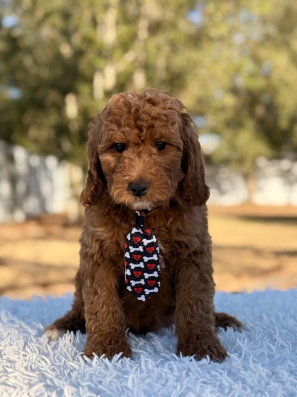 Meet Ronnie, a handsome male F1b Mini Goldendoodle with a calm confidence and a loving nature. With his soft, low-shedding coat and adorable teddy-bear look, Ronnie is ready to become a loyal companion and a steady, affectionate presence in your home.