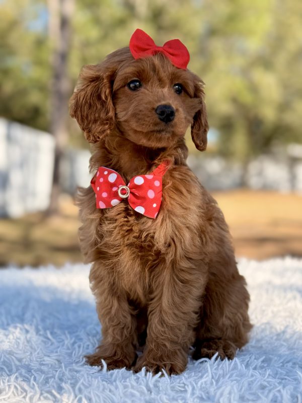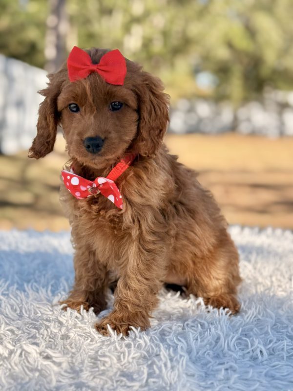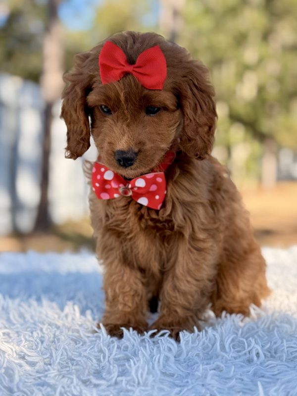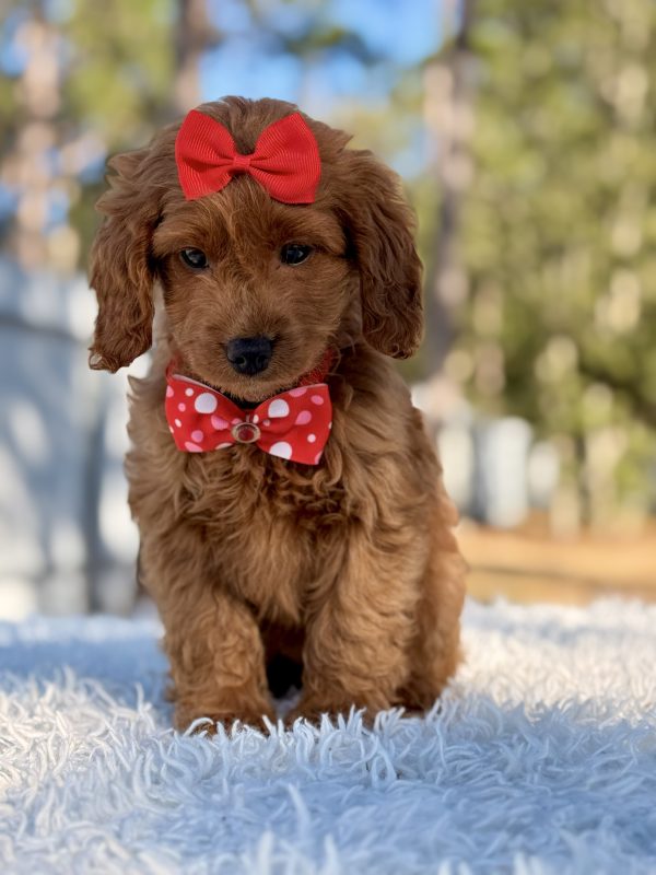 Meet Sisi, a beautiful female F1b Mini Goldendoodle with a calm, intuitive nature and a soft, comforting presence. With her gentle eyes, low-shedding coat, and affectionate personality, Sisi is ready to become a loyal companion and a peaceful addition to her forever home.