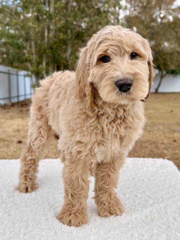 Meet Xander, a handsome F1 Standard Goldendoodle with a loving personality and an adorable teddy-bear look. He combines the loyalty of a Golden Retriever with the intelligence of a Poodle, making him a perfect companion for families or active homes looking for a devoted best friend.